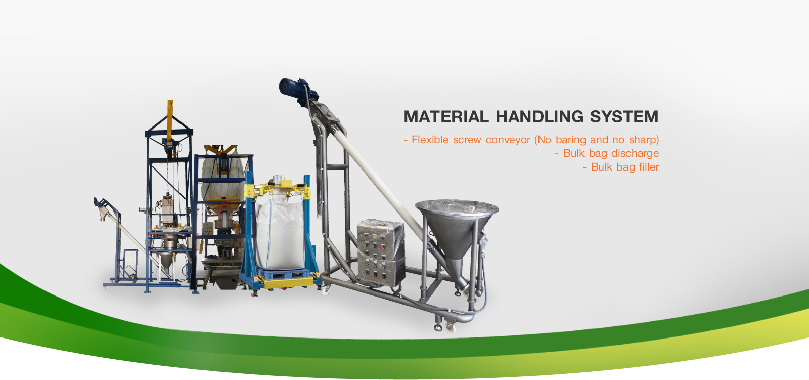 Bulk Material Handling, Batching, Mixing, Weighing, Filling, Bagging, Conveying, Loading, Palletizing, Wrapping,