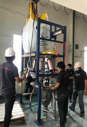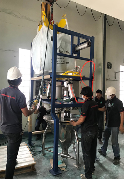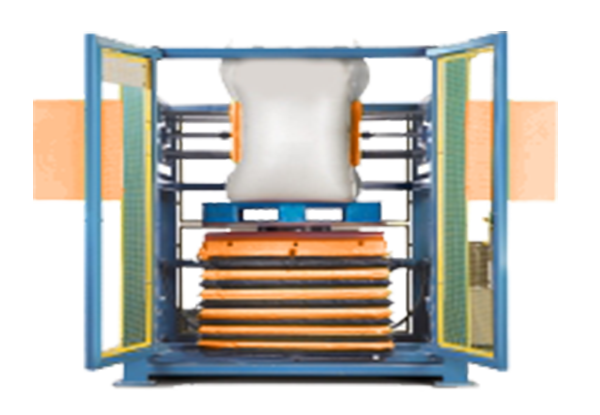 Loosen bulk solid materials and shipment, enabling bulk bag dischargers to discharge the material through bag spouts. Two hydraulic rams with special plates that press opposing sides of bulk bags to loosen the contents of the bag and accommodate bulk bags of all popular sizes.