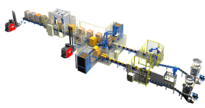 Depalletizer is an automatic machine designed to unload items from a pallet. It serves opposite purpose then Palletizer.