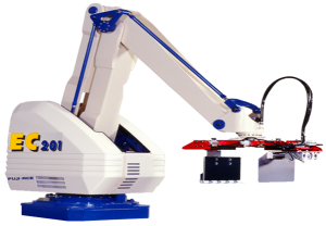 EC-171 is High-Speed Robotic Palletizer & has the largest working envelope of all Fuji Robots while maintaining the smallest rotation radius. The EC-171 Robotic Palletizer is energy efficient using only 0 kva while still allowing the robot to work in tight space conditions and accomplishing a very high palletizing rate.