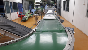 It can be designed according to customer requirement and it can be an automatic system controlled by PLC. The system is linked with Packing machines, Metal detector, Check weigher, Reject station and Production date printer. An operator can work on HMI to operate the whole system.