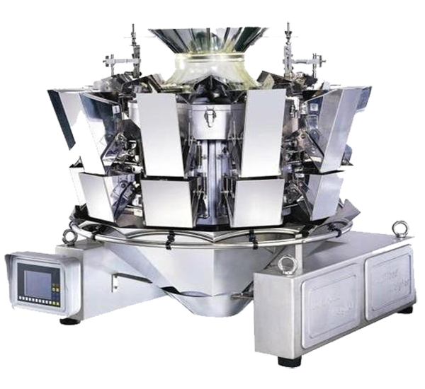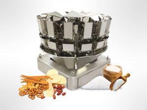 A ‘typical target’ weight per pack might be 100 of a product. The product is fed to the top of the multihead weigher where it is dispersed to the pool hoppers. Each pool hopper drops the product into a weigh hopper beneath it as soon as the weigh hopper becomes empty.